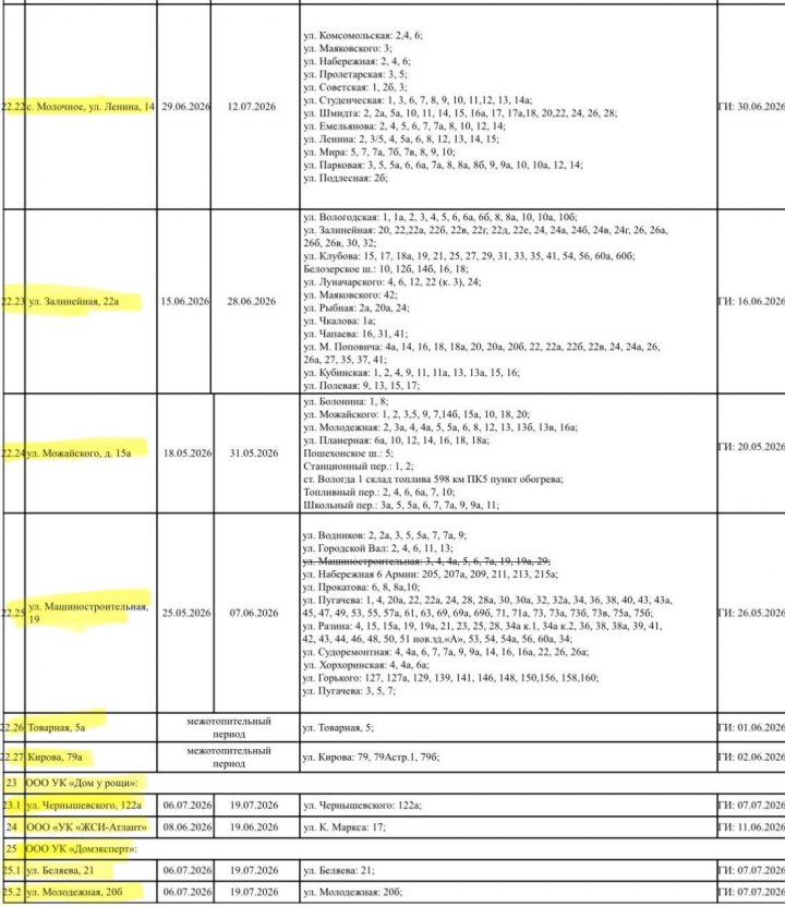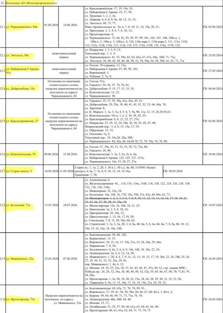 Первые отключения начнутся 18 мая. В этот день на плановый ремонт встанут Вологодская ТЭЦ ПАО «ТГК-2», обеспечивающая теплом и горячей водой Южный район, а также четыре котельные АО «Вологдатеплосеть».